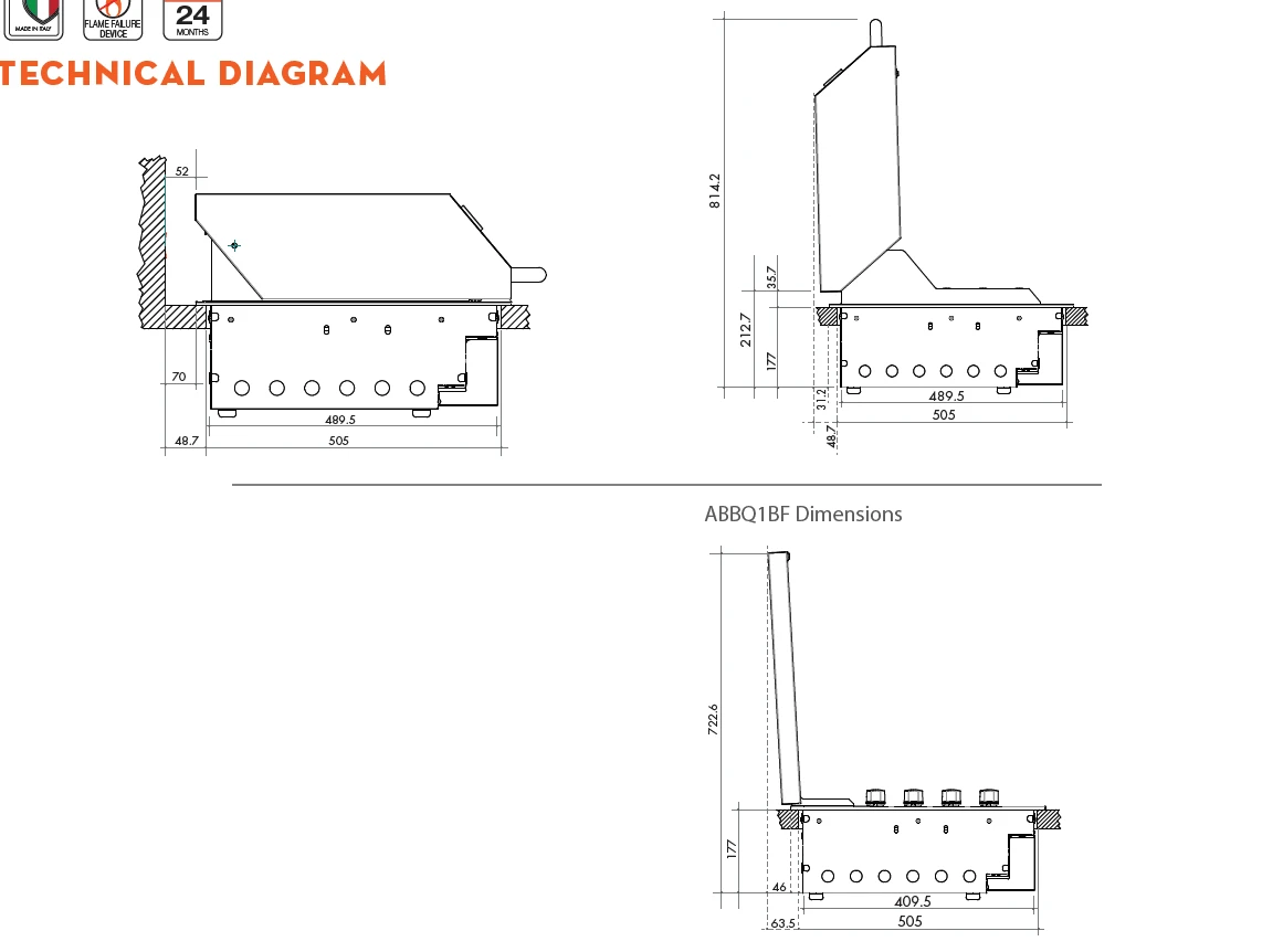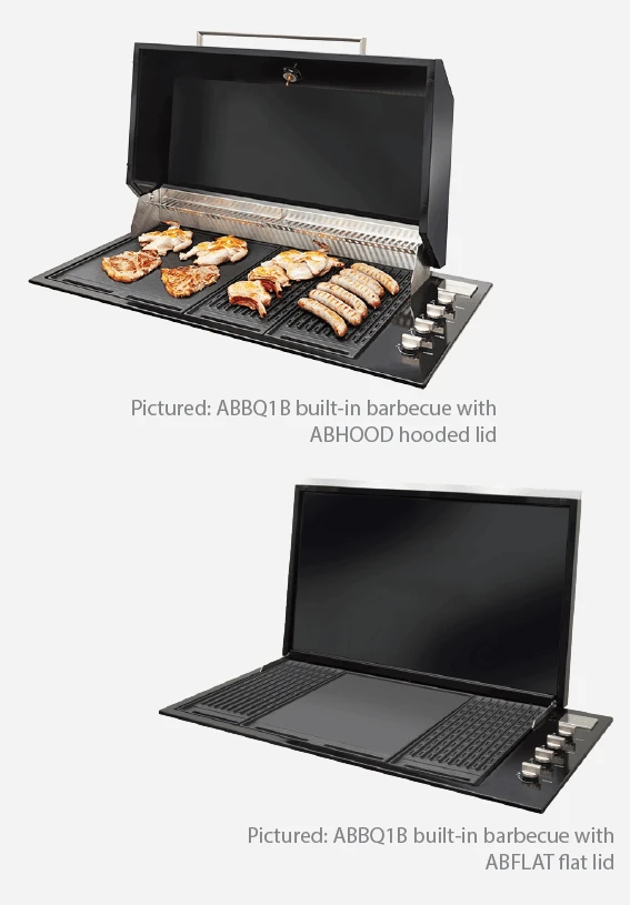 The drop-in Artusi Jet Black BBQ is a 304 Stainless Steel BBQ with a Gloss black enamel finish. Made in Italy, the enamel finish makes it a breeze to clean, and looks slick & modern in any outdoor kitchen design. The ABBQ1B is finished with either a Slimline 304 SS Black Enamel Lid (ABFLAT) or the Artusi Jet Black Double Skin Roasting Hood (ABHOOD).