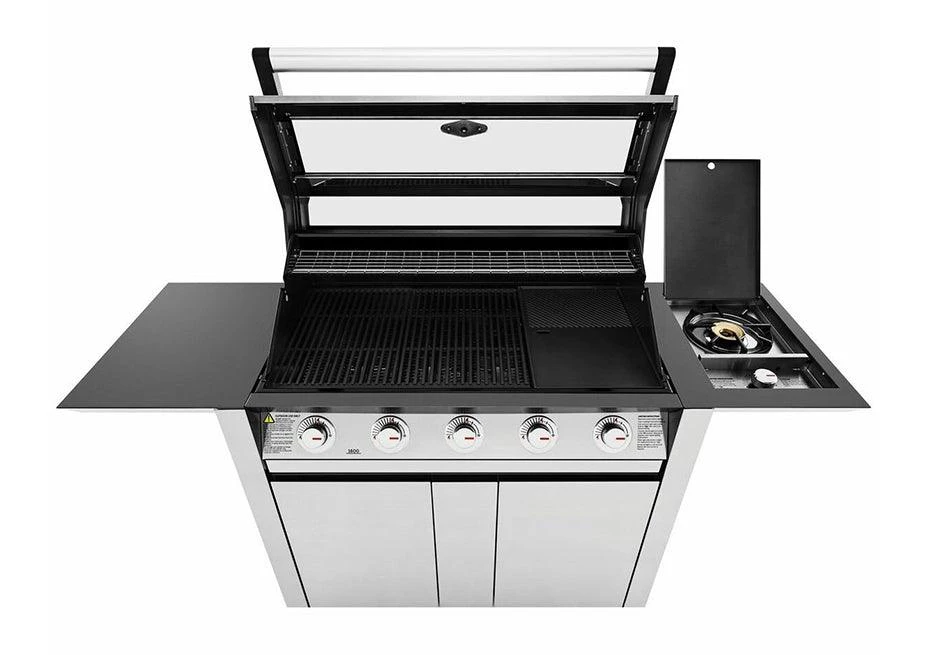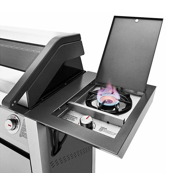 - Integrated shelf 15MJ cast iron Side Burner.