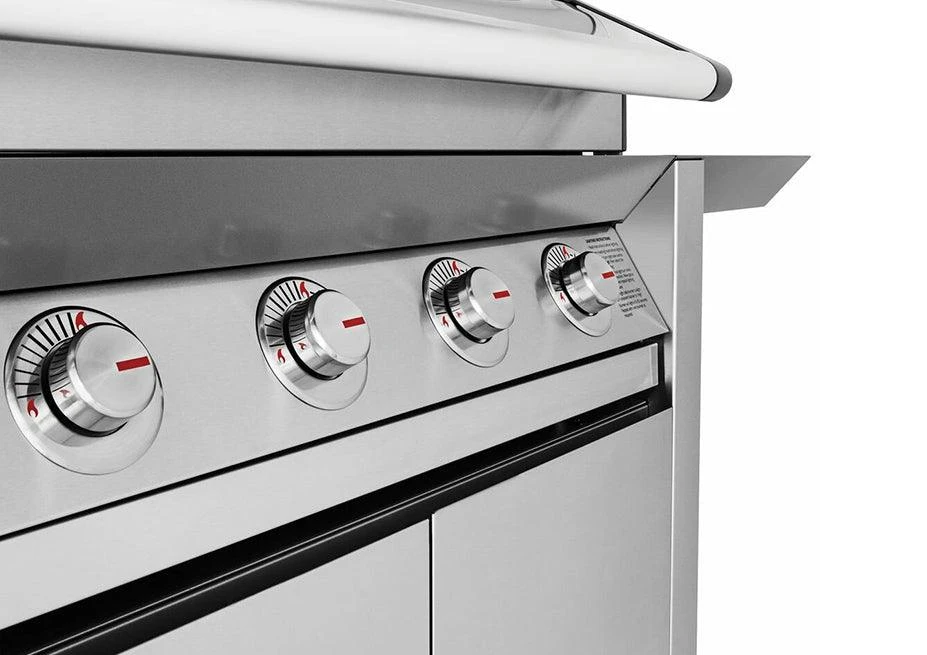 - Individual zinc cast iron control dials with clear heat level graphics.