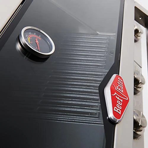 Keep an eye on what, cooking without lifting the lid. Maintain heat using the built in temperature gauge or peer through the full width glass viewing window to check how those sausages or brisket are doing.