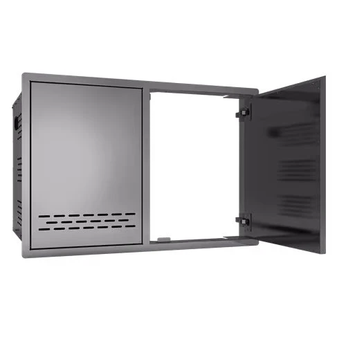 The Beefeater BOC2060SA combines sleek style with practical storage solutions for your outdoor kitchen. This unit features a spacious cupboard door and a dedicated gas tank drawer, providing ample space to keep your essentials organized and easily accessible.
