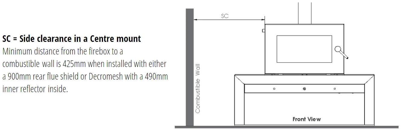The B905 Coffee Table mount allows the end user to install the firebox in 3 different locations. There are 4 mounting lugs on the base of the firebox that fit snugly into the locating mounts in the coffee table base. The firebox can be mounted left, centre or right, depending on the end-users preference.