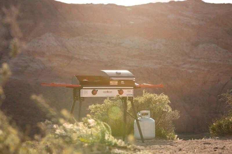 With two 30,000 BTU burners, matchless ignition, and a three-sided windscreen, cooking outdoors has never been easier. You can create culinary masterpieces wherever you go with all the mix-and-match 14″ accessories. Munch on pizzas at the campsite, grill steaks in the backyard, fry bacon at the tailgate party, and more. New features such as two side shelves that fold down, built-in leg levelers, and convenient folding legs put the Pro 14 at the top of its class, giving you a cooking experience unlike any other. Add this cooking system to your outdoor kitchen today.