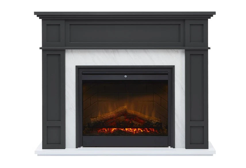 Transform your home with the stunning Eltham fireplace suite. Modern and traditional elements come together beautifully in this design, featuring striking grey and marble finishes. Setting up is a breeze and requires no pricey installation or venting – simply place it in any room you desire. With the 26 inch LED firebox and realistic flame effect, you can enjoy the cozy ambiance year-round.