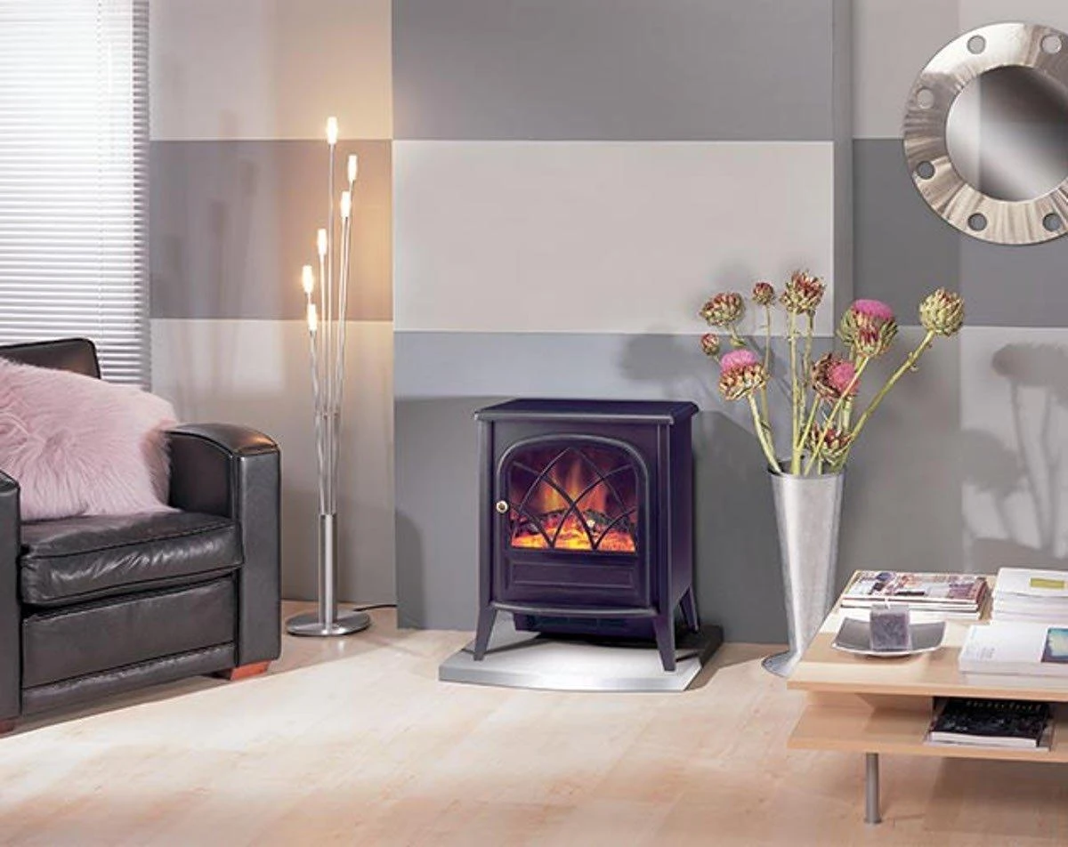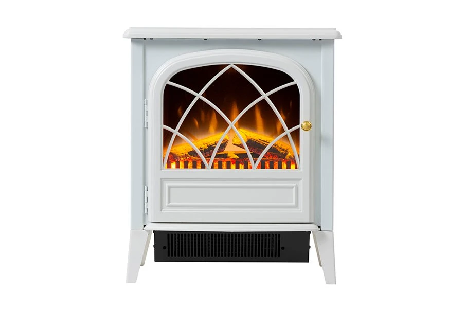 This compact electric stove gives you all of the cozy ambiance of a wood stove/heater with none of the mess. The matte black / white finish, working door and traditional details make it a perfect to any space.