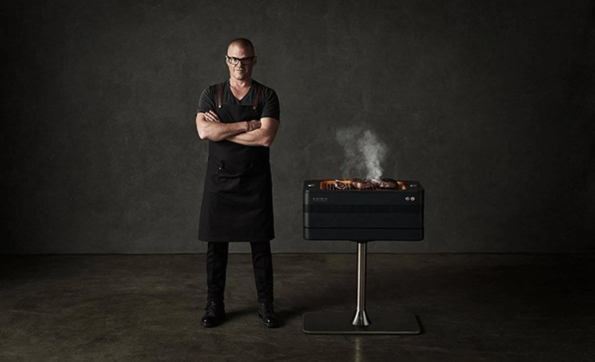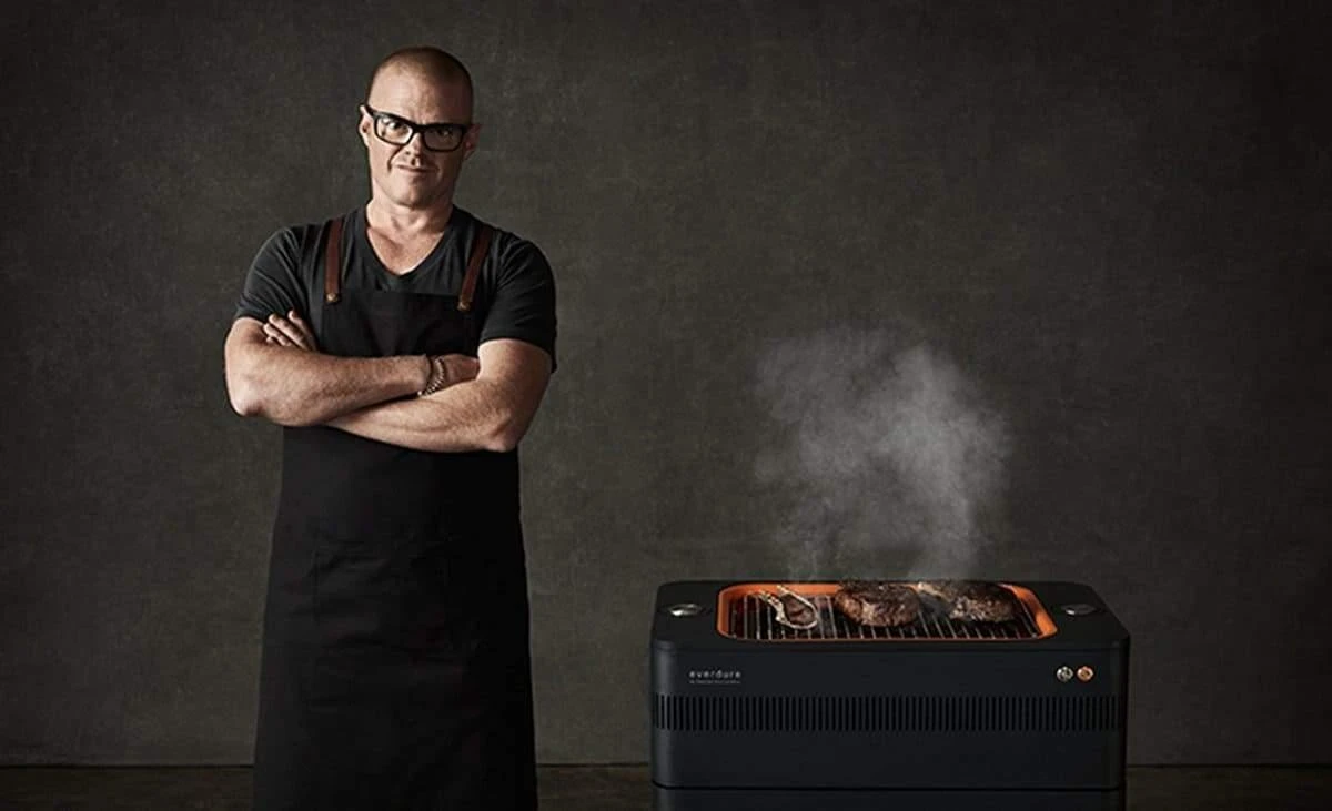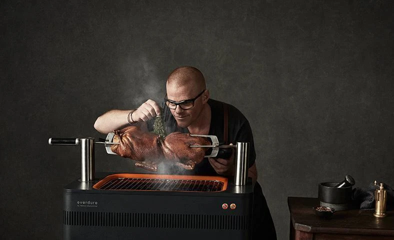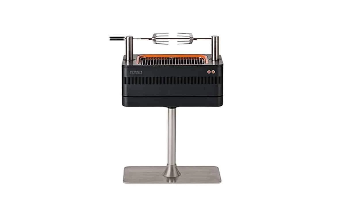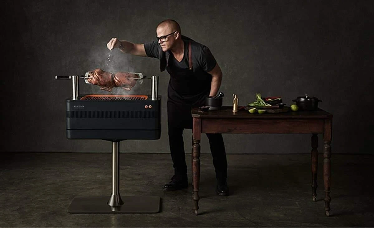 Everdure Fusion Charcoal BBQ By Heston Blumenthal is the developed cross of a normal Charcoal BBQ and Rotisserie in a sleek and compact porcelain enamel firebox.