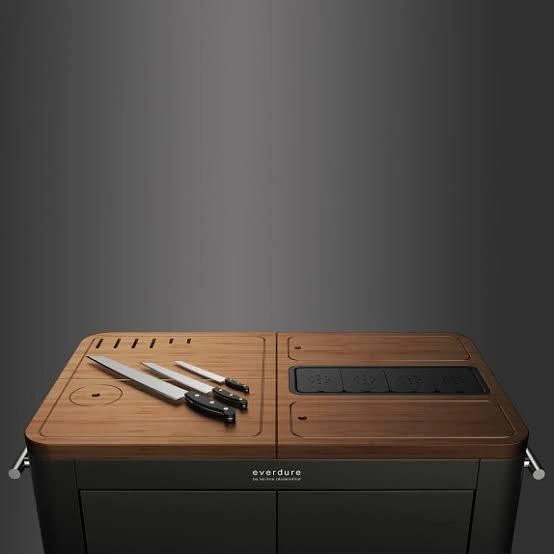 - Complete with acacia timber chopping/serving boards, the Everdure by Heston Blumenthal Mobile Preparation Kitchen lets you conveniently prepare ingredients and serve them right away.