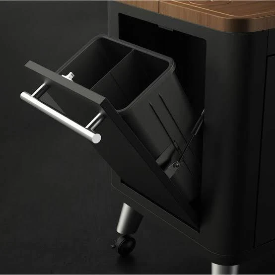 - Throw out food scraps and other debris on this mobile kitchen’s pull-out bin that is partitioned for segregating recyclables and organic wastes conveniently.