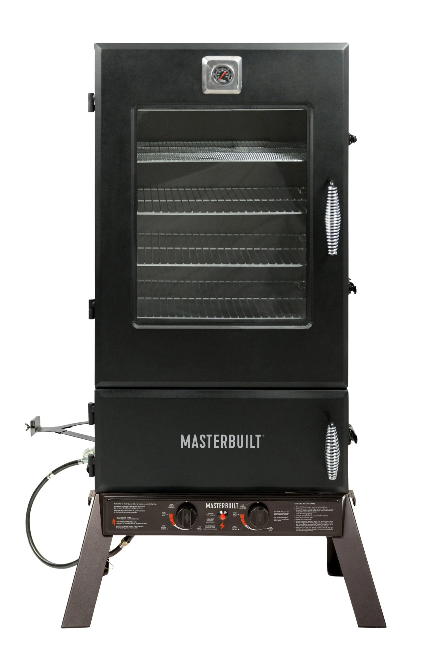 Embrace the art of bbq smoking with the Masterbuilt XL Gas Smoker, great for both beginners and professionals. Featuring four chrome-plated grill racks, you can smoke an assortment of your favorite foods all at once, able to cook up to six turkeys, eight racks of ribs, or twenty chickens at once. Easily monitor the internal temperature with the built-in temperature gauge on the front of the smoker.