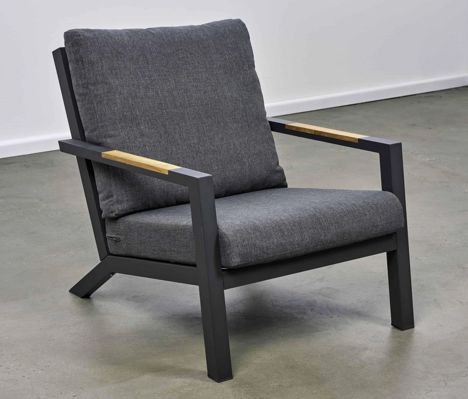 The Venus Setting is a stylish and modern setting featuring angled back legs on the two club chairs and the three-seater sofa. The Venus setting also features a splash of colour in the form of Teak Inlay within the arms of the chairs and sofa as well.
