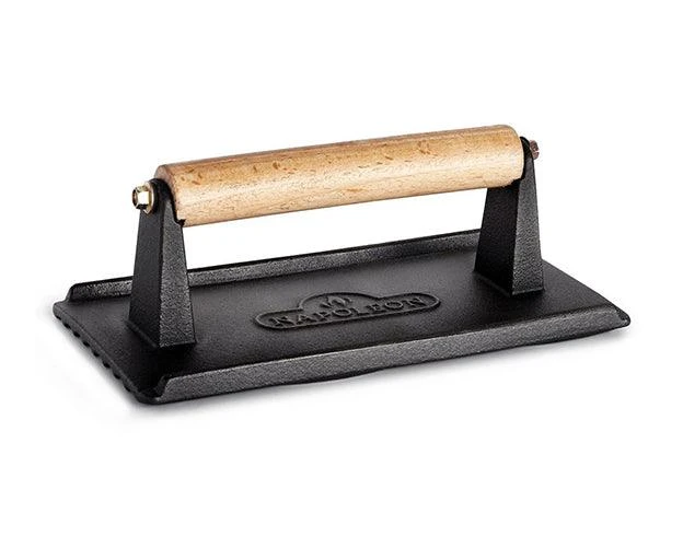 Napoleon’s Cast Iron Chef’s Press is built to withstand the heat of any grill. The seasoned cast iron distributes heat evenly and retains heat exceptionally well, ensuring consistent cooking throughout your meal. The wooden handle stays cool to the touch for safe and comfortable use.