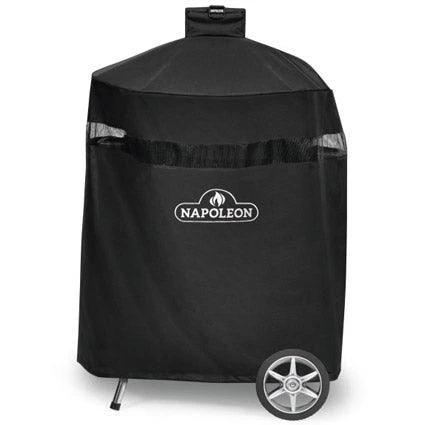 Protect your NK22CK-L Charcoal Kettle Grills with this high quality grill cover. This grill cover is made from heavy duty PVC polyester. The material is UV protected to prevent color fading and features a 3-inch ventilation strip to reduce moisture buildup under the cover. This cover features a large embroidered Napoleon logo to show your Napoleon pride and a metal hanging loop for storage when the grill is in use.