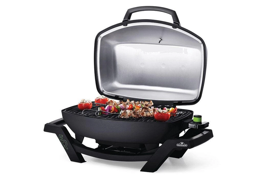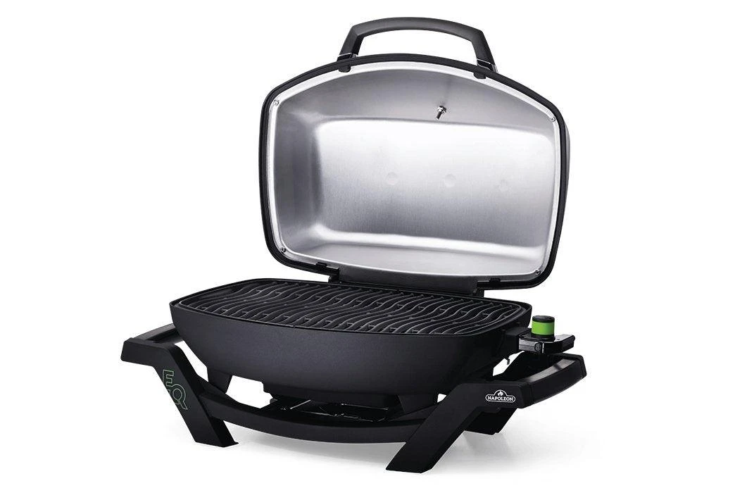 Napoleon’s TravelQ™ PRO285 Portable Electric Grill is stylish, all-black with a cast aluminum, high-topped lid design lets you take portable grilling to the gourmet level. The windproof design will hold heat in. High heat searing is a snap and you’ll know it’s a Napoleon with the iconic WAVE™ cooking grids for those distinctive sear marks.