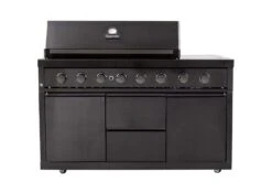 Gasmate Nova Graphite Outdoor Kitchen With Storage, 6 Burner BBQ And Single Door Fridge + Top