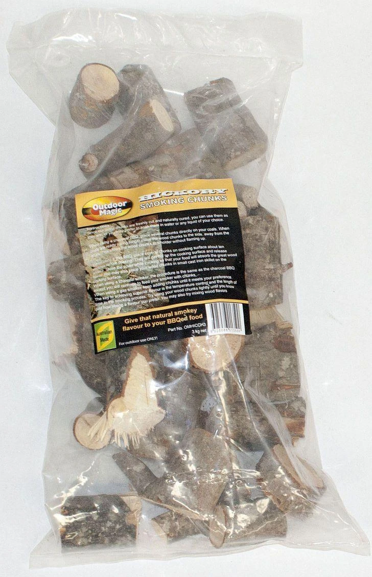 Outdoor Magic Smoking Chunks burn slower than smoking chips and are a steady source of smokey flavouring. One or two chunks (each about the size of an egg) will be enough to enhance the flavour of an average serve of meat. Cherry Wood Outdoor Magic Smoking Chunks also mixes well with other flavours to create a stronger flavour, such as Hickory, Pecan or Alder.