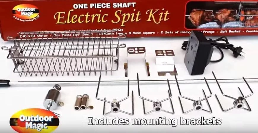 The Outdoor Magic Chrome Plated Electric Spit Kit is a one piece electric ultra premium spit kit.