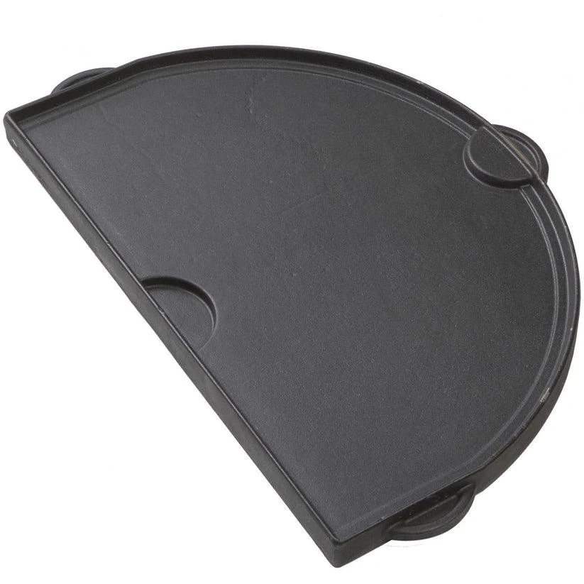 This dual-purpose Primo Cast Iron half-moon Cast Iron Griddle with a smooth and a grooved side allows you to fry, sear and sauté. It offers higher heat retention, even heat distribution, and faster cooking times.
