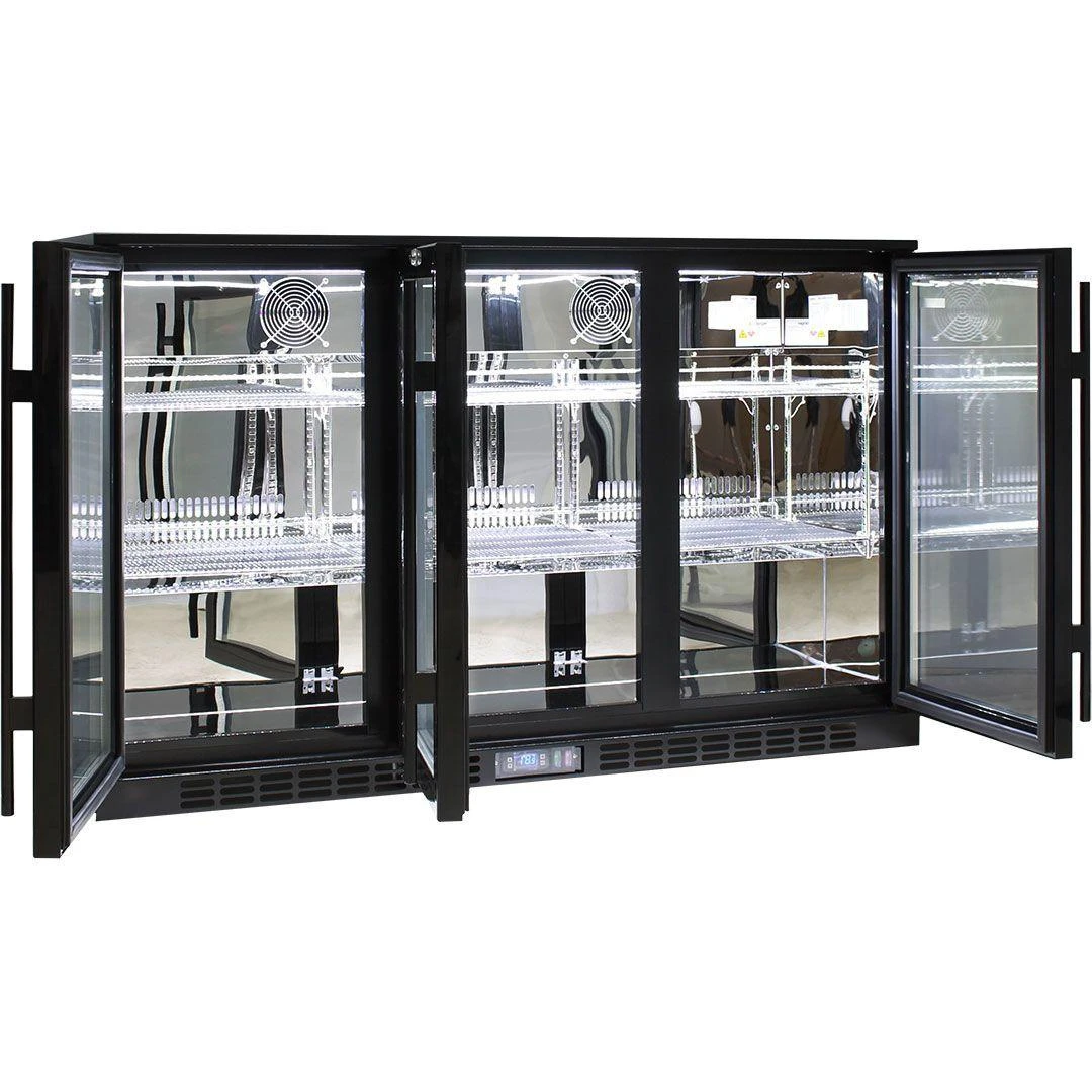 Rhino 330L Commercial Glass 3 Door Bar Fridge