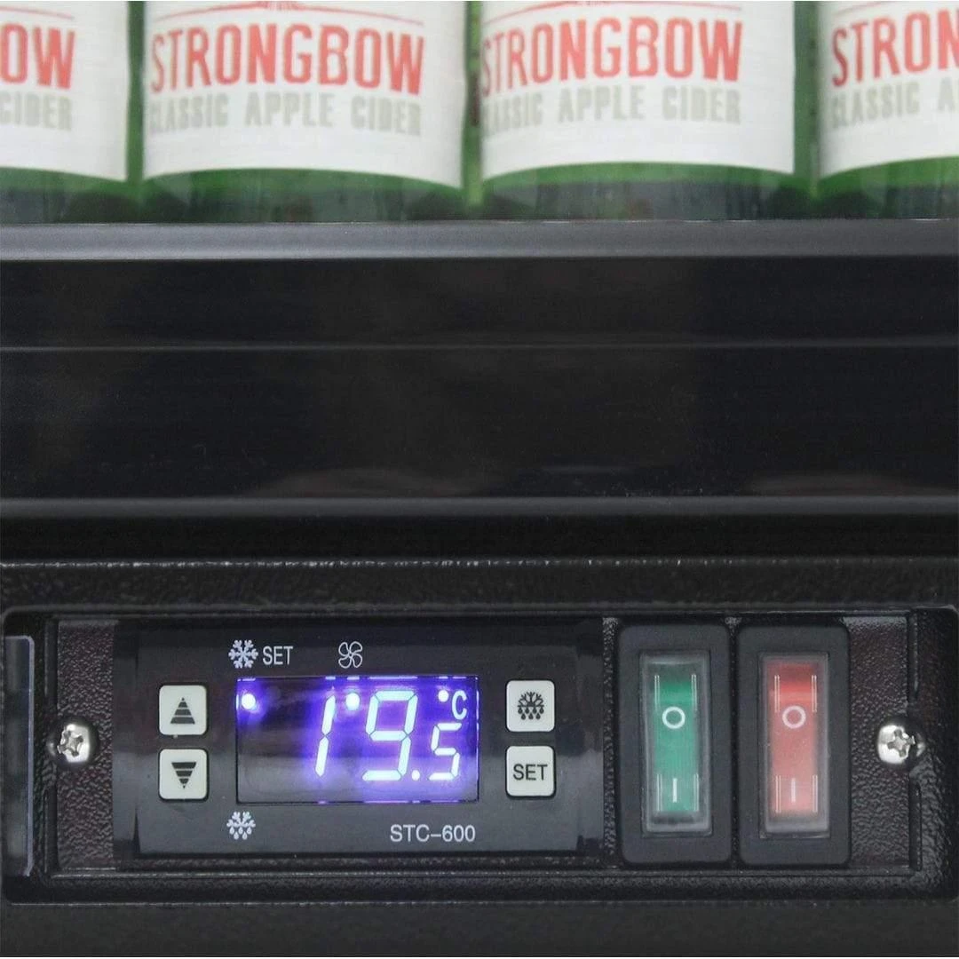 Features include LG compressor LOW E glass, lock, self-closing doors, heavy-duty shelves, and polished stainless steel interior to make unit robust for tough conditions.