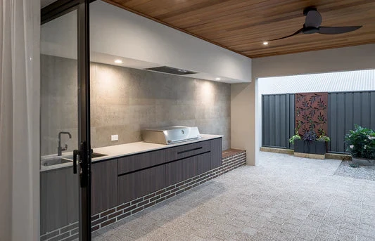 Integrates seamlessly into cabinetry and bulkheads in alfresco/outdoor dining areas.