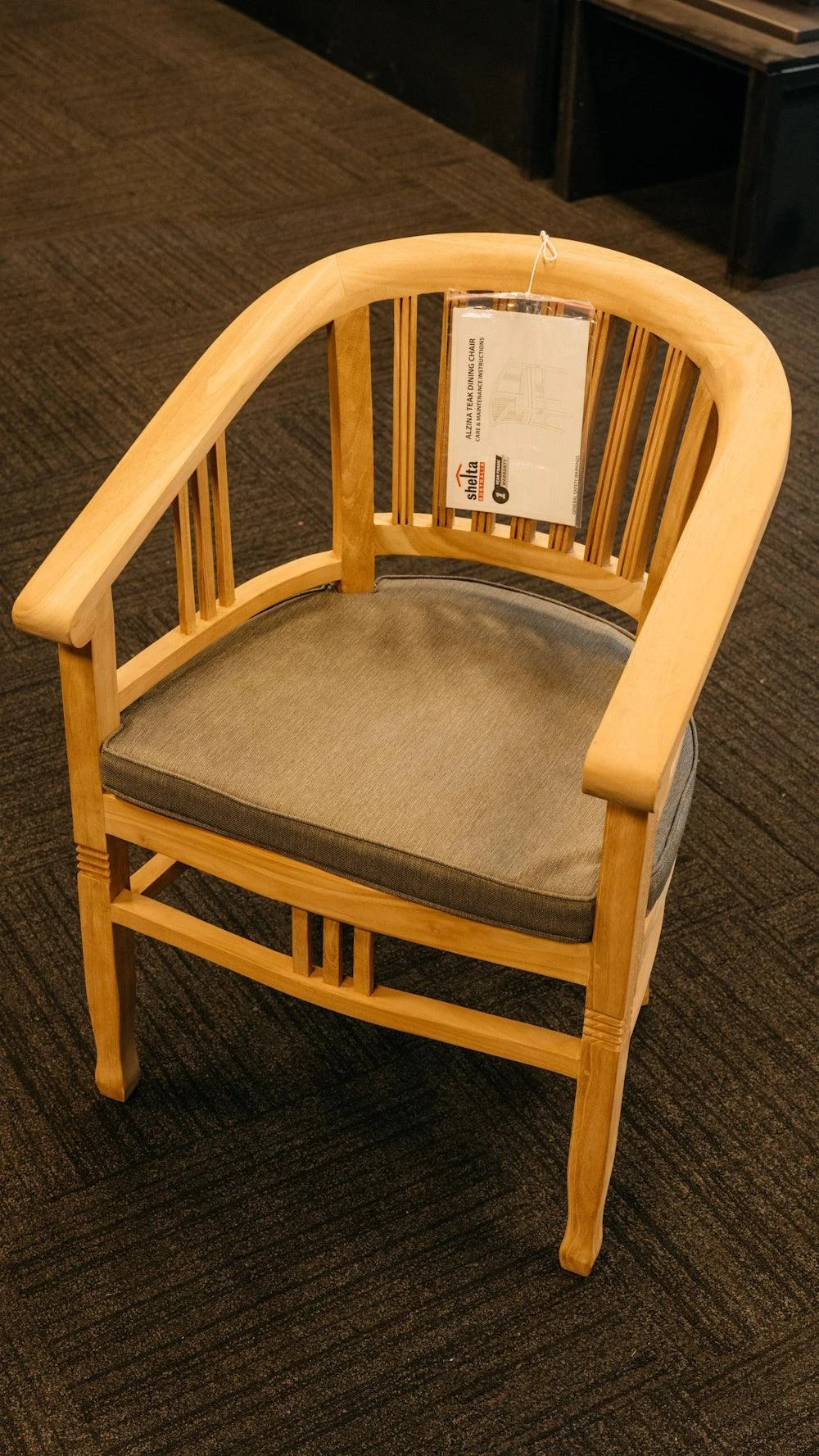 The Alzina Teak Chairs are designed for comfort and support, with contoured seats and wide slatted backrests.