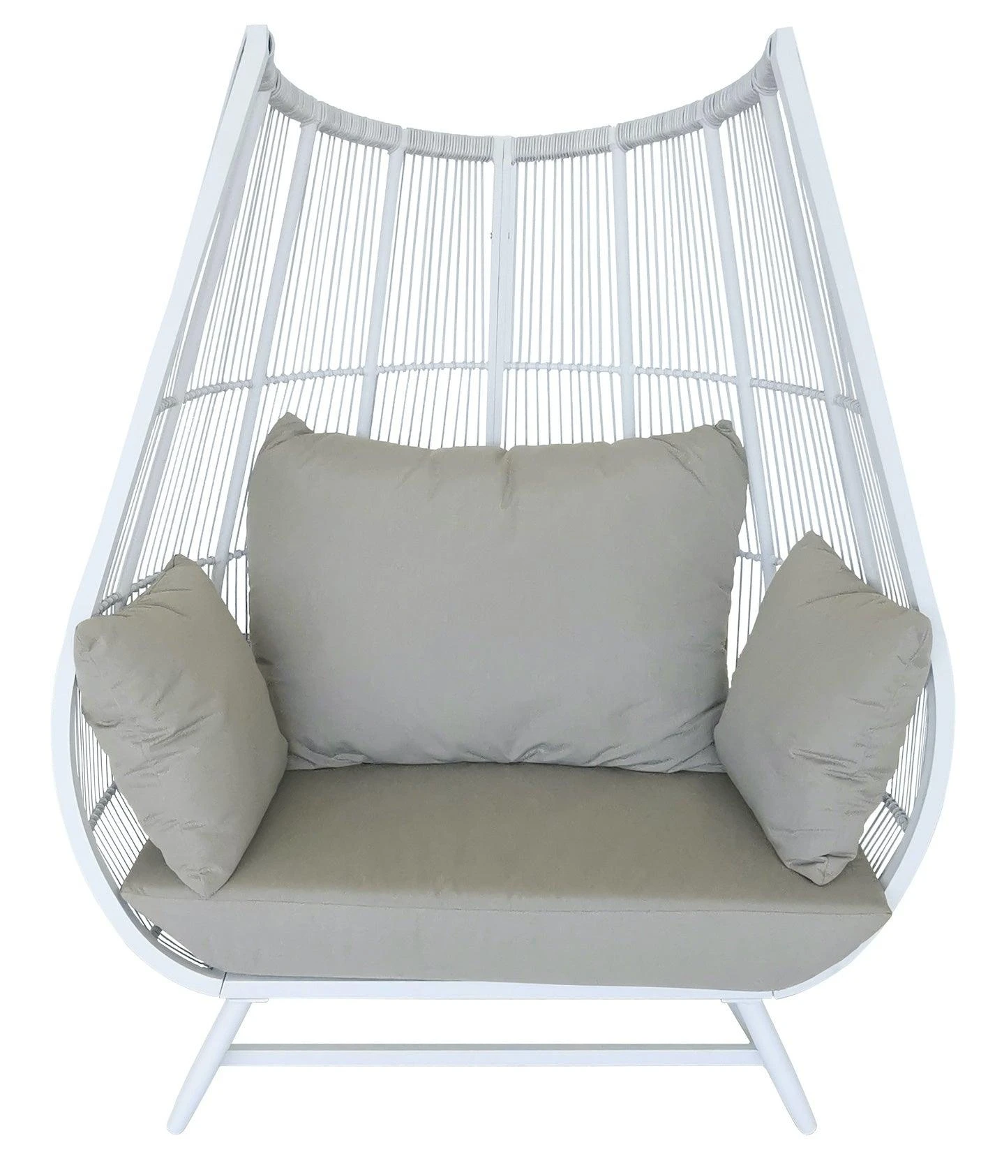 The knock-down design makes it easy to move or store the pod chair, offering flexibility for your outdoor space. The white aluminum frame and antique white wicker perfectly blend with any outdoor decor, adding a touch of elegance to your outdoor living area.