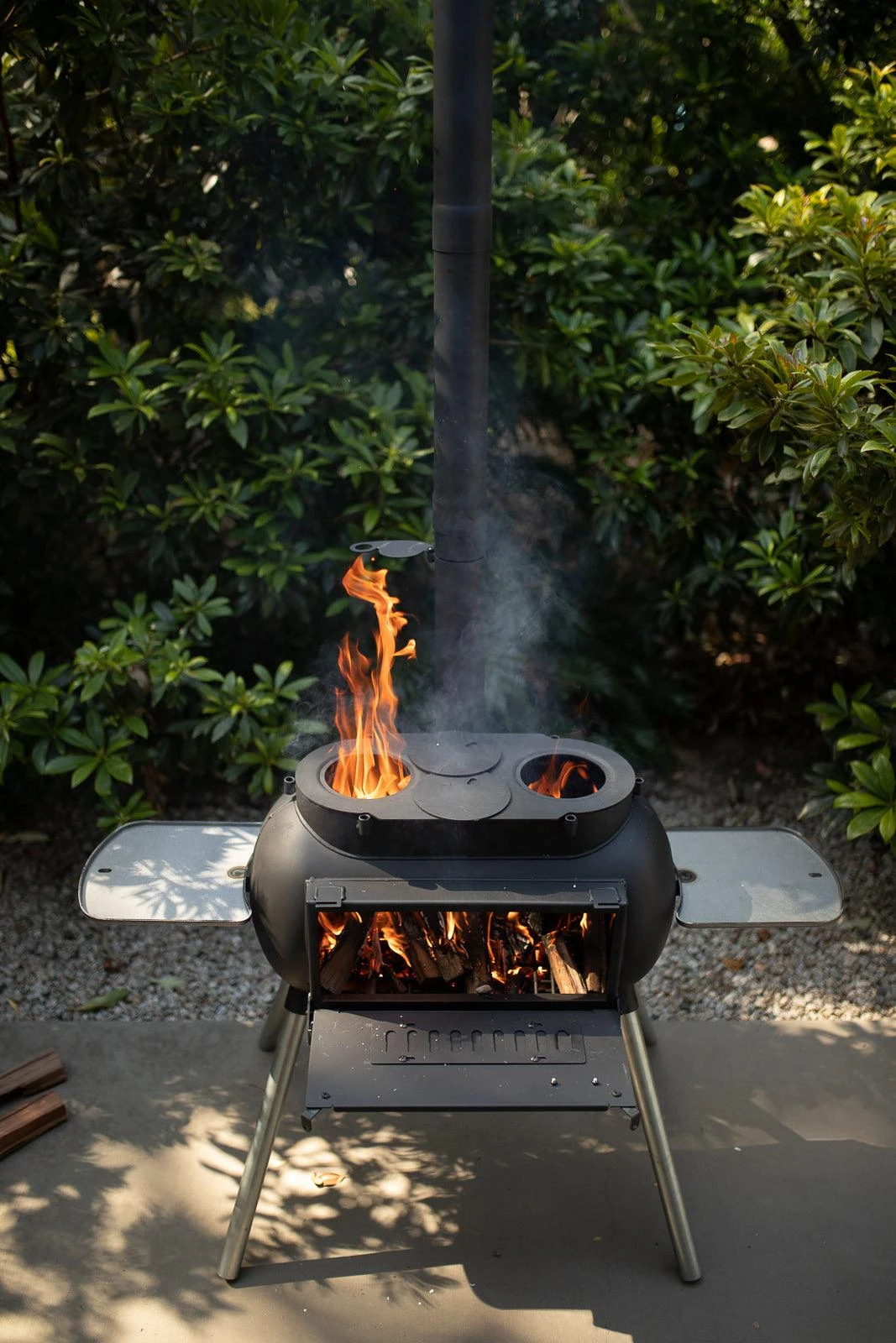 Being a wood fired stove, the Big Pig brings true versatility to your outdoor cooking setup. Used as a stove, you can cook any dish the same way you would on an indoor stove! The Big Pig really comes into its own with an open top design, letting you remove the stove top and cook directly over the wood fire, giving you the amazing flavour that only a wood fire can.