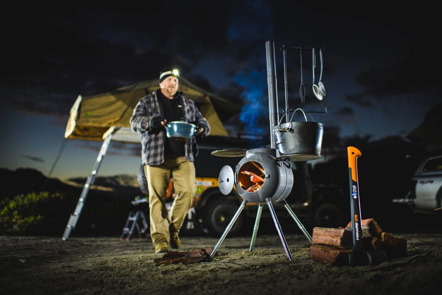 The Ozpig is a true blue Aussie invention for those with a passion for outdoor cooking and travel. A portable multipurpose cooking device and heater, Ozpig also has all the ambiance of an open fire. Plus its raised off-the-ground design means it can be used in many locations where an open fire is not permitted. (However, we always recommend you check local regulations.)